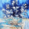 The central image — a frost-covered tree — appears as an ephemeral vision. Thanks to thick, textured strokes of white paint, there is a sense of frosty fragility: it seems that if you touch the canvas, the «snowy» flowers on the branches will fall off. Chepkasova subtly captures the play of light, making the painting almost tangible.