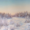 Vladimir Abaimov’s painting «The Seasons. Winter 2» is a gentle, meditative view of a winter landscape, executed in a more restrained, realistic style than some of the artist’s other works. The canvas is permeated with a sense of frosty purity and tranquility.