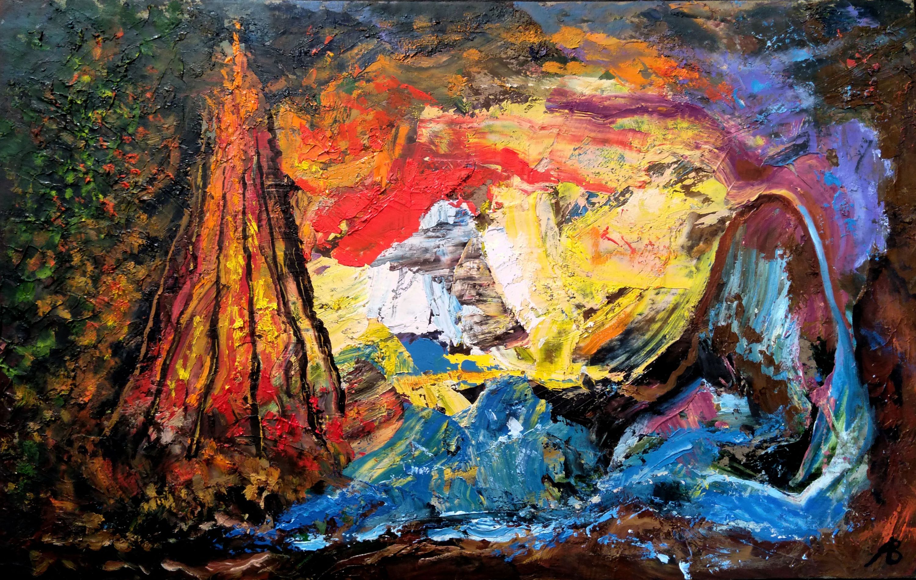 Vladimir Abaimov's painting «Abstr C 7» is a vivid example of expressive abstract landscape, where the artist uses color and texture to convey primal energy. This canvas does not depict a real view but evokes a sense of clashing natural elements.