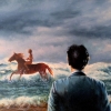 Abaimov masterfully uses symbolism: the sea as the ocean of time, the stormy sky as the burden of life's hardships, and the bright, almost illuminated image of the rider embodying the purity and sincerity of the soul. The child on the horse is not just a person here, but the hero's lost «self.» The painting is imbued with quiet sadness and nostalgia, reminding us how often, as adults, we reach back to our origins, trying to grasp that inner light that was only accessible to us in childhood. This work is about the eternal search for the way back to a land where anything is possible.