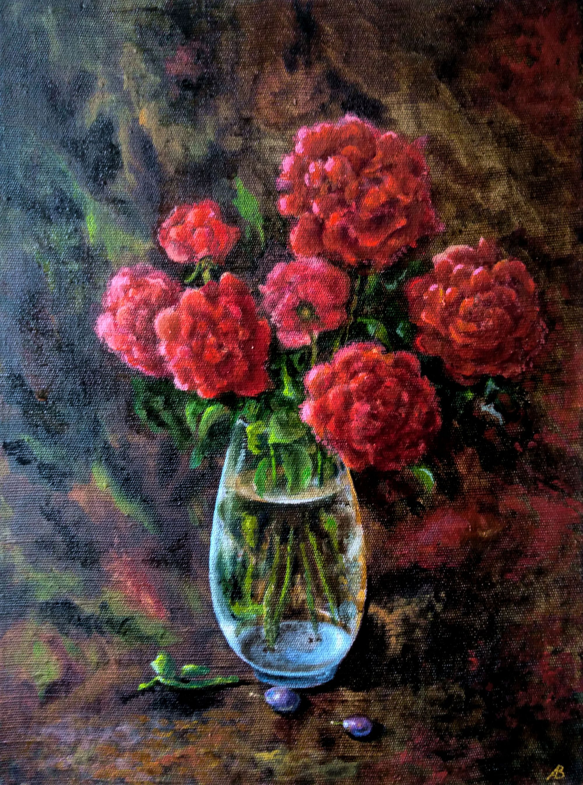 Vladimir Abaimov’s painting «The Last Autumn Roses» is a classic still life filled with drama and the beauty of late blooming. The artist focuses all attention on the bouquet, which seems like the last bright burst of life before the onset of cold weather.