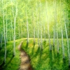 The central element of the composition is a winding path that, like an invitation, draws the viewer's gaze into the depths of the forest thicket. The white trunks of young birches, arranged in vertical rhythms, emphasize the height and lightness of the space. Sun rays pierce through the barely unfolded foliage, creating soft shadows on the grass and illuminating every corner. The work is filled with a sense of purity, hope, and quiet joy.