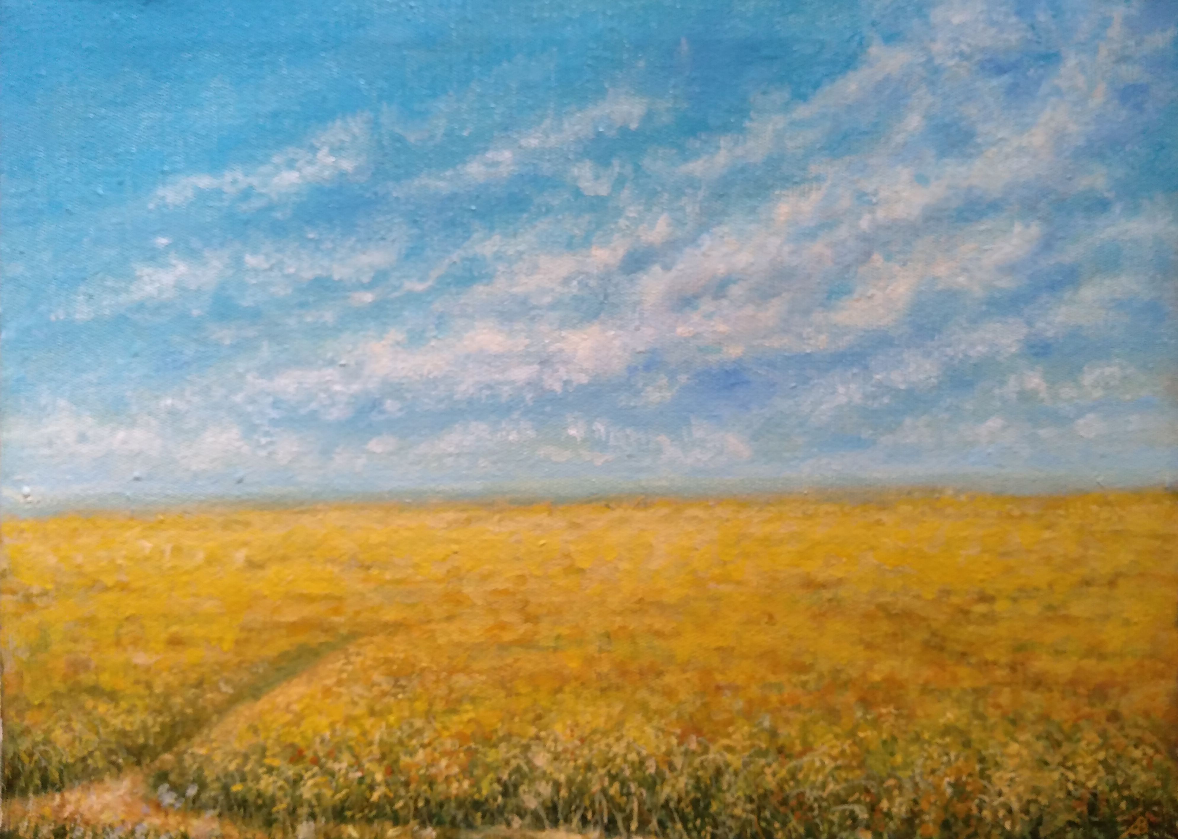 You can buy the painting «Field, Sky, Clouds» online, sized 41 x 56 cm, with secure delivery to the address you specify.