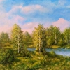 The central motif is the bright birch trunks, which seem to dissolve into the emerald green of the meadow and foliage. The calm surface of the river gently reflects the azure sky, echoing the soft pink clouds tinted by the pre-sunset light. The entire composition is filled with air, freshness, and that special tranquility that Russian summer brings. Abaimov masterfully uses soft color transitions, creating a sense of depth and space that invites you to step inside. This work is a hymn to the simplicity and beauty of the surrounding world, reminding us of the importance of contemplation and the ability to find happiness in familiar landscapes that remain with us as the brightest memories of warm days.