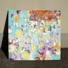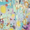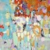 In the foreground of this work, multi-colored spots and circles mix – lemon yellow, soft purple, turquoise, lavender and white shades create an atmosphere of cheerful chaos and light. The upper part is dominated by orange-red tones, as if reminiscent of a cloudless sunset. The picture is filled with energy, positivity and movement, many abstract figures and free lines create a feeling of overflowing light, festive bustle and joy.