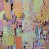 Colorful composition. Multi-layered sufisticated art. Emotional intuitive spontaneus painting. Picure remainds about summer, Sun, carelessness and happiness.
