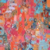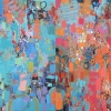 Colorful bright painting. Multi-layered, reach textured colorful composition has the complex rhythmic structure.