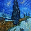 A copy of the painting "Road with Cypress and Star" by Vincent van Gogh, also known as "Country Road in Provence at Night", painted in May 1890. The artist's last work, completed in Saint-Rémy-de-Provence. Currently kept in the Kröller-Müller Museum, located in the Hoge Veluwe National Park. When writing a copy of the painting, about 10 glaze layers were made, including a "dead layer", due to which the painting acquires a glow. The main thing in creating the painting was not to create an exact copy, but to convey the mood.