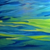 The canvas is made in an abstract manner and conveys a landscape of hills - wavy lines and soft color transitions create the illusion of endless space. The main shades are rich turquoise, blue and bright green. The movement of the lines emphasizes the smoothness of the relief forms, captivates the eye with the calm rhythm of nature. The painting sets the mood for peaceful contemplation - it seems to invite the viewer to dissolve in the soft sea ofearth and sky, to feel the silence and space.