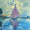 This painting can be hung on the wall of your apartment, house, office, restaurant, or hotel and will be a wonderful decoration for your interior. You can buy online the artwork "Landscape with a sail and sun (copy of Monet's painting)" measuring 60 x 50 cm with free shipping to your location!