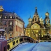 The painting takes the viewer to the snow-covered streets of St. Petersburg. In the center of the composition stands the magnificent Cathedral of the Savior on Spilled Blood, its domes and architectural details stand out brightly against the cold winter sky. On the right, an ancient bridge, lightly dusted with snow, leads to the temple. There is white snow on the streets, yellow light can be seen in the windows of the houses, and the evening blue sky enhances the feeling of magic and coziness. The work is done with care for details, especially in the architecture and the transmission of the atmosphere of a Russian northern city.