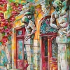 This painting can be hung on the wall of your apartment, house, office, restaurant, or hotel and will be a wonderful decoration for your interior. You can buy online the artwork "Entrance with Atlases" measuring 35 x 50 cm with free shipping to your location!