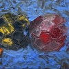 The four balls in the painting symbolize different stages of a soccer player's career: the first ball - the beginning, the second ball - development, the third ball - peak form, the fourth ball - completion. Each ball has its own unique hue, which reflects the emotional coloring of each stage.