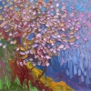 The painting was painted on the banks of the Kuban River on a beautiful spring evening. At this moment, the whole nature around us seems to come to life thanks to the flowering of the trees. Their delicate flowers fill the air with a sweet fragrance, and the variety of shades pleases the eye. The water in the Kuban River barely sways, the sky is painted in soft pink and lilac tones, foreshadowing the imminent sunset. The whole composition is imbued with an atmosphere of peace and harmony with nature, which allows the viewer to feel like a part of this beautiful spring evening on the banks of the Kuban River.