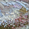 The mood of this work is light and weightless. The city hustle, a cloudy day, and amidst it all, a white flock of seagulls over the river. Like a scattering of beads, their flight is always mesmerizing and makes you stop.