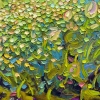 Before my eyes unfolded a scene for a new painting: a lake of blooming lotuses. An amazing canvas of yellow and green shades is complemented by peach, pink, and cream accents – the lotus flowers.