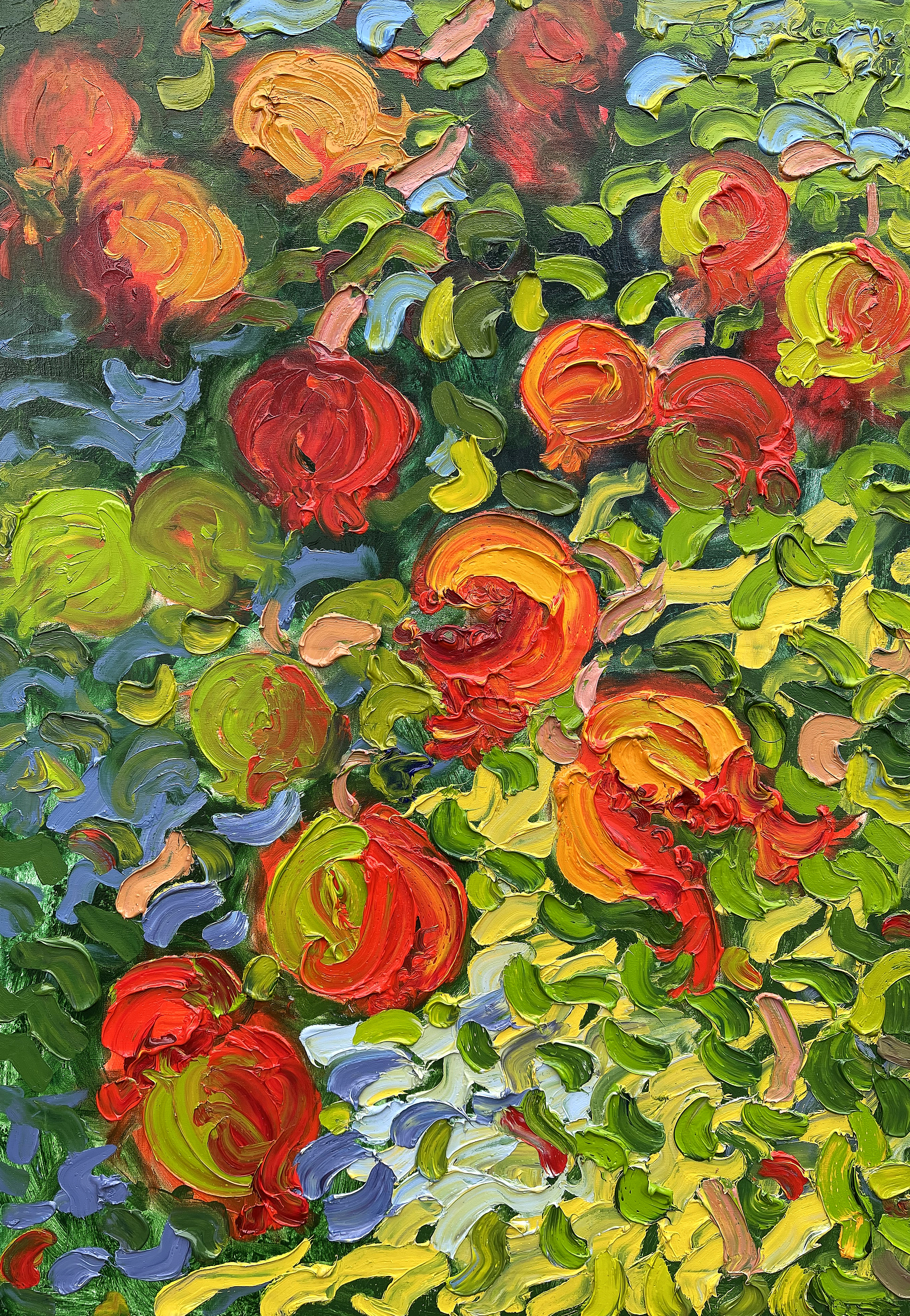 A distinctive feature of the painting is its overall atmosphere. The bright, juicy colors and expressive brushstrokes create a feeling of joy and abundance, as if the viewer is in a garden full of ripe fruit and bright sunshine.