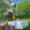 Картина Александра Болотова «На даче весной» — это идиллическое изображение весеннего дня, наполненное уютом и светом. Художник мастерски передает атмосферу загородного отдыха и традиционного русского гостеприимства.