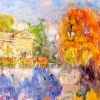 The painting by Kirill Devochkin «October, Griboyedov Canal» is a masterful depiction of a Petersburg autumn landscape, where architecture and nature merge in a unified whirl of color and reflections. The artist creates an image full of light and autumnal nostalgia.