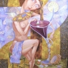 This work is permeated with an atmosphere of warm memories and oriental charm. In the center is an elegant female figure sitting on a high chair. She is half-covered with transparent fabric, which gives the image lightness and understatement. On her neck is a large, elegant Egyptian necklace, reminiscent of ancient culture. In the hands of the heroine is a giant glass of dark red wine or drink, in the reflection of which one can guess the reflections of the sea and the sun. On the table at her feet is a seashell and a starfish, which symbolize the memory of a trip to the Red Sea, its warmth and exoticism. The color palette is filled with gold, ocher, purple and turquoise accents, which creates a feeling of sunset light and mystery. The image of the heroine merges nostalgia for distant lands, sensuality and oriental poetry.