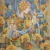 This work takes us to the world of the protector and guardian, symbolizing care and love. In front of the viewer is a majestic female figure, part of which seems to consist of miniature houses, towers and churches. Her clothes are decorated with complex patterns, and her head is a bright headdress with a mosaic ornament. In her hands she holds cities, like jewels, emphasizing the idea of preserving traditions and peace. Behind and around are rows of fairy-tale houses, sparkling with autumn foliage, combined with cold blue and warm ochre shades of the palette. The heroine seems to protect her world, covering it with a delicate scarf. Her look is thoughtful, filled with wisdom and care. This painting is about roots, peace and feminine power, protecting the Home and Family.