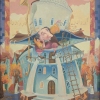 Before us is a fantasy and autumnally warm painting, in the center of which is an unusual house, reminiscent of a huge musical instrument. The shape of the building seems to include features of a piano and a gramophone: on one side of the house is attached a megaphone, and the roof repeats the curves of the instrument's lid. At the very top of the house sits a thoughtful character with a lyrical expression on his face, as if listening to the whisper of autumn leaves and the melody coming from this fairy-tale building. His palm is at his ear, and behind, in gentle yellow-warm tones, are depicted autumn trees and houses of the town, drowning in golden light. Falling leaves, musical notes, hanging ladders - everything is subordinated to one thoughtful theme: the melody of autumn sounds in every corner of the picture. The composition seems to invite the viewer to stop, listen to the harmony of nature and feel the coziness of this time of year.