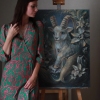 In my painting, there is a little Capricorn. Since the sign's task is to refine everything, cut off the unnecessary, and be able to structure and organize, the flowers around it transform according to its character, which it sets.