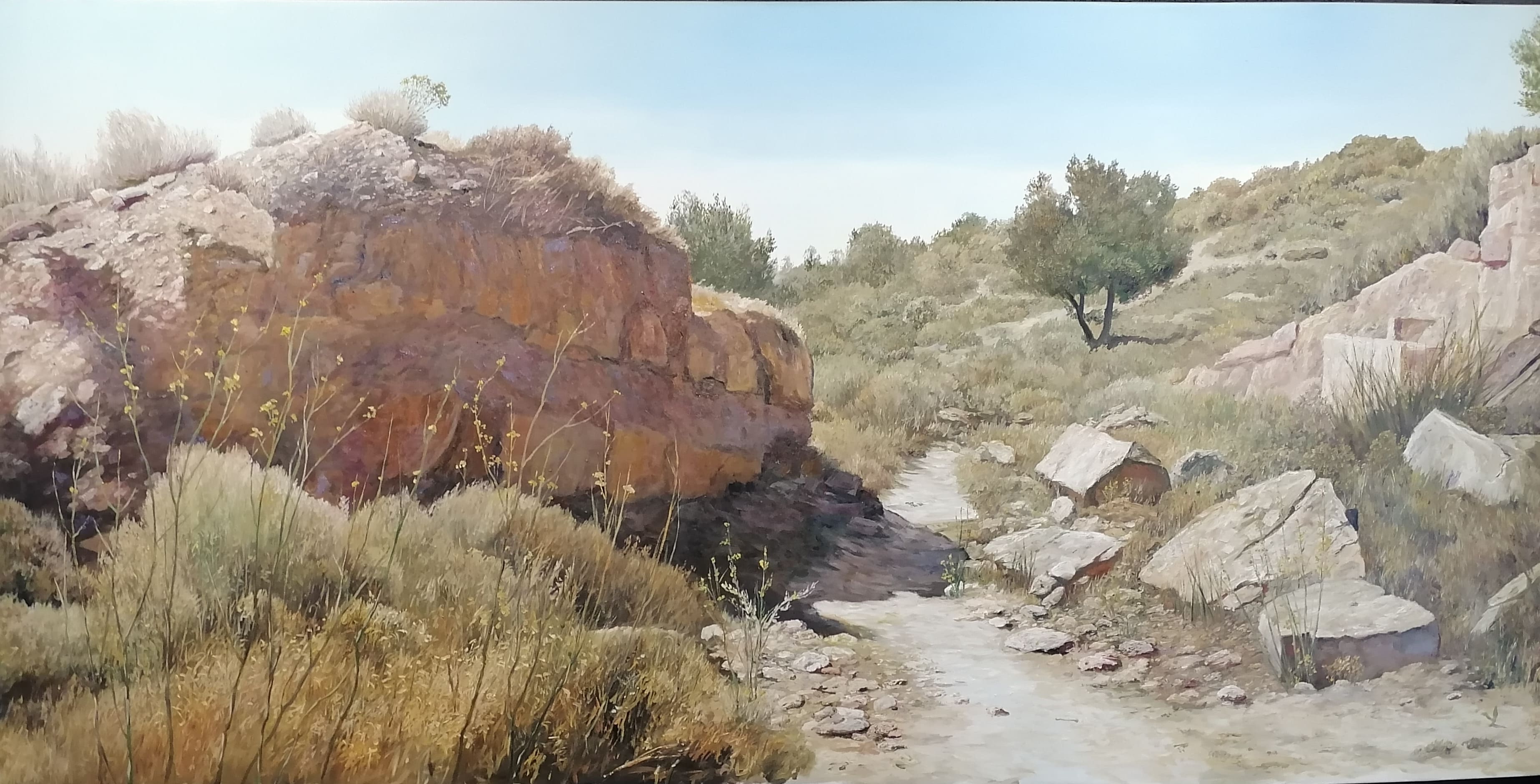 This painting can be hung on the wall of your apartment, house, office, restaurant, or hotel and will be a wonderful decoration for your interior. You can buy online the artwork "Path in the Iberian Mountains" measuring 200 x 100 cm with free shipping to your location!