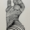 The work is made in the op-art style: black lines wrap around an invisible person, forming a mysterious female figure. The lines seem to follow the contours of the body, twisting and creating a hypnotic visual effect. The white background emphasizes the contrast. The painting conveys the dynamics of movement, sensuality and modern style, while leaving room for interpretations and associations on the theme of individuality, freedom and inner strength.
