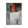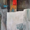 Палитра картины сложная и многослойная. В нижней части преобладают приглушённые оттенки белого, серого и бледно-голубого, создающие ощущение старых, обветшалых стен или архитектурных фрагментов. Эти светлые тона выделяются благодаря своей объёмности.