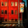 The red wall of a factory built at the beginning of the 20th century. Moscow, center, Zamoskvorechye district. The bright rays of the setting sun were directed perpendicular to the wall, from the side of the Moscow Kremlin. There was something symbolic in this lighting, referring to the historical events of the first half of the 20th century.