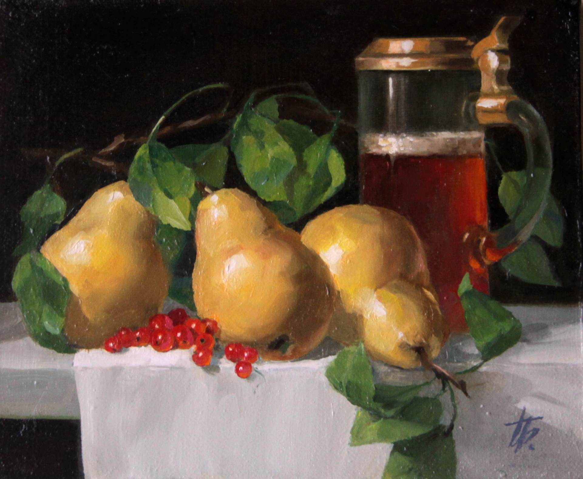 The still life is painted from life in oil on linen canvas using a multilayer painting technique that creates the illusion of volume and tangibility of the objects.