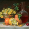 The still life was created from life using a multilayer oil painting technique that creates the illusion of volume and tangibility of the objects.
