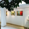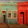 Спектральные цвета натуры и доминирующие цветовые элементы дают возможность почти абстрактного восприятия композиции картины, апеллирующей чуть ли не лаконичности полотен Малевича или Ротко, однако, тонкая проработка пластики фасадов позволяет почувствовать материальность, фактуру, игру света и тени, прочесть говорящие надписи на стене, дополняющие настроение работы смысловыми нюансами.