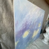 The work is done in pastel violet-blue tones with smooth transitions to yellow. It is completely abstract and resembles a fragment of the sky with morning clouds illuminated by soft sunlight. The painting creates a feeling of peace and lightness. Picturesque brushstrokes of varying density immerse the viewer in an atmosphere of carelessness and silence, as if looking up at a dawn field.