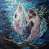This painting can be hung on the wall of your apartment, house, office, restaurant, or hotel and will be a wonderful decoration for your interior. You can buy online the artwork "Mermaids" measuring 90 x 115 cm with free shipping to your location!