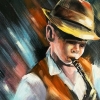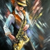 Greetings, art lovers. For you, my author's painting, handmade. This original painting is made on canvas stretched on a stretcher. "Saxophonist" - you hear these bright sounds! This picture is distinguished by an interesting solution with smooth color transitions, a large contrast of light and dark colors. The painting is filled with life, which spills out beyond the canvas. This painting can be a gift for people close to you, as well as decorate your interior.. The painting is covered with a protective varnish from dust and sunlight.