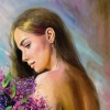 Greetings, art lovers. For you, my painting is an oil painting "Lilac". This original painting is made on canvas in oil. A gentle young girl with a bouquet of lilacs is the image of spring. A girl with a bright bouquet of flowers, surrounded by cold shades, she is very elegant. This painting can be a gift for a young lady or for lovers of painting, as well as decorate your interior. The painting will give you a joyful, spring mood. The painting is covered with a protective varnish from dust and sunlight.