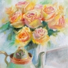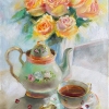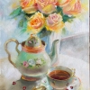 Greetings, art lovers. I present to you an author's still life with a bouquet of roses and fragrant tea with pomegranate seeds. The painting is made in a warm color, and carries the mood of a serene morning. This painting will give you warm emotions and mood. The painting can be an original gift, or an interior decoration.