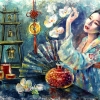 Female Painting Asian Modern Art Female Art Asian Woman Orchid Painting