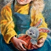 Hello, art lovers! For you, the delicate painting "Portrait of a girl with a toy" is painted in oil on canvas. The picture shows a cute girl and her favorite toy - a bunny. The picture will always give you warm emotions. This is an original painting in one copy.