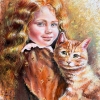Hello, art lovers! For you, the delicate painting "Redheads" is painted in oil on thick cardboard. The picture shows a cute girl and her beloved cat. The girl and the cat are red. The picture will always give you warm emotions. This is an original painting in one copy.