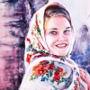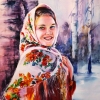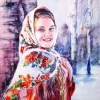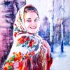 Hello, art lovers! For you, the painting "March Sun" is painted in watercolor on paper. The painting depicts a shy girl in a white shawl with a floral pattern. The painting depicts a Russian woman in a colored headscarf. This is an original painting in one copy. The painting is painted in soft colors.