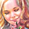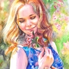 Hello, art lovers! For you, the painting "Portrait of a girl" is painted in watercolor on paper. The painting depicts a cute girl with a blooming apple twig. She is as gentle as Spring itself. This is an original painting in one copy. The painting is painted in soft pink and blue tones.