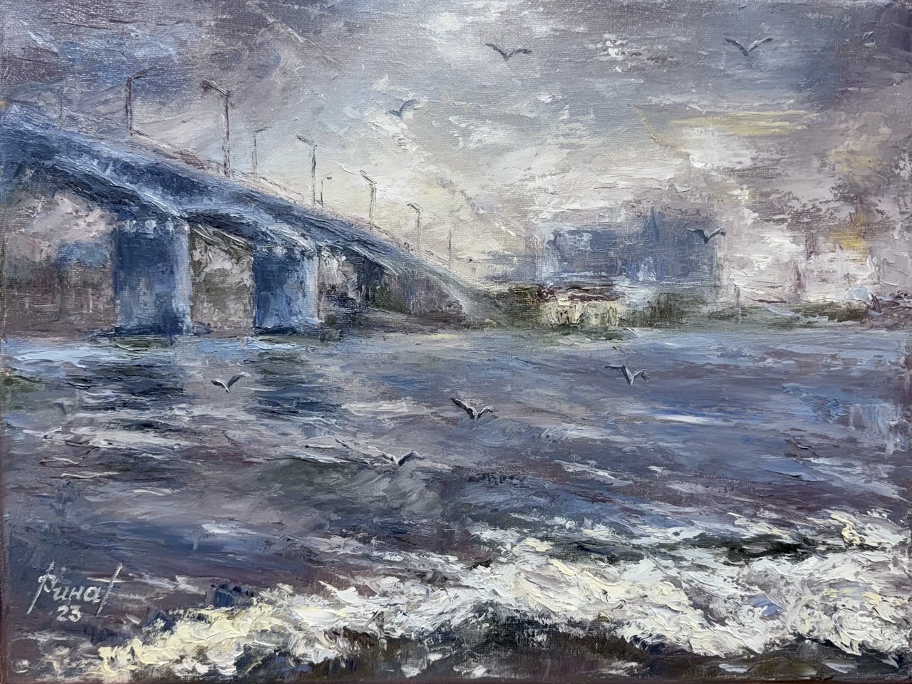 Если вы интересовались живописью Камышина (Волгоградская область), то вы наверняка заметили, что Бородинский мост является "любимцем" у многих местных художников. Ринат также решил изобразить "достопримечательность" в своем стиле.
