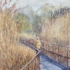 The painting by Rinat Khabibulin «Осенняя прогулка» is an atmospheric and meditative landscape capturing a moment of solitude on a wooden path laid through dense autumn reeds. The work is executed in a restrained but very expressive palette characteristic of the artist, with an emphasis on texture and natural beauty.