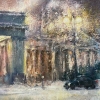 The painting by Rinat Khabibulin «Evening St Petersburg» is a magical and atmospheric cityscape capturing one of the most recognizable views of the city on a winter evening. The work is executed in an expressive, textured style that conveys the feeling of frosty air and shimmering light.