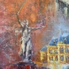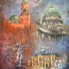 The painting by Rinat Khabibulin «Memorial places» is an artistic reflection on the theme of Russia's cultural and historical heritage. In his work, the artist combines iconic architectural and sculptural landmarks, creating a kind of «memory collage» where each element carries a deep symbolic meaning.
