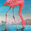 «Карибская леди» Варвары — это ода грации, элегантности и экзотической красоте фламинго. Картина передает ощущение безмятежности, тепла и того особого очарования, которое присуще тропическим пейзажам. Яркая цветовая палитра и внимание к деталям делают это произведение по-настоящему притягательным и живописным.
