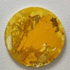 A golden circle on a white background is created using dense, hard strokes of a palette knife. Textured spots and iridescent yellow shades fill the surface with circular dynamics, creating a feeling of sun, honey or precious metal. The painting is distinguished by its laconicism, but at the same time radiates warm light and inner richness. There are no unnecessary details here — only a play of color and texture, the embodiment of pure joy and the energy of the sun.